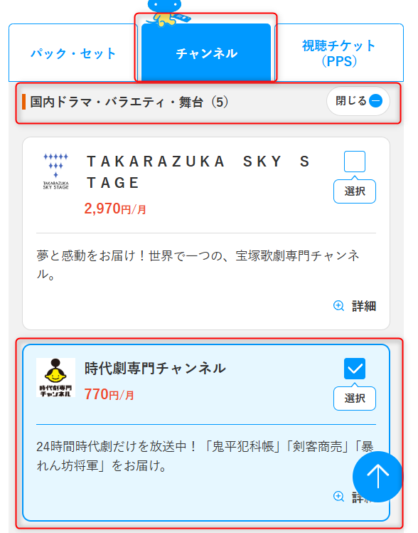 続いてスカパーの時代劇専門チャンネルに申し込みます。