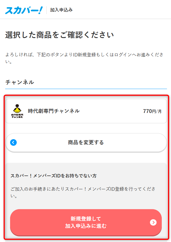 スカパー!メンバーズIDは持っていないと思うので「新規登録して加入申し込みに進む」を選択
