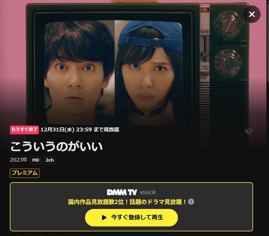 ドラマ・こういうのがいい動画を無料視聴できて多くの独占ドラマ、バラエティ作品を見れるのは、DMM TVのみ